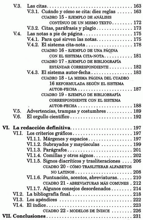 Resumen: Ante la actual situación de masificación de nuestras universidades, Umberto Eco destina este libro sobre todo a los estudiantes con pocos recursos y apoyos, a los que viven lejos de los grandes centros urbanos con sus facilidades institucionales y a los que nadie les ha explicado cómo se busca un libro o un documento en bibliotecas y archivos.A pesar de desventajas personales, dice Umberto Eco, «se puede hacer una tesis digna, aún hallándose en una situación difícil, causada por discriminaciones recientes o remotas. Se puede aprovechar la ocasión de la tesis (…) para recuperar el sentido positivo y progresivo del estudio, no entendido como una cosecha de nociones, sino como una elaboración crítica de una experiencia, como adquisición de una capacidad —buena para la vida futura— para localizar los problemas, para afrontarlos con método, para exponerlos siguiendo ciertas técnicas de comunicación».Los consejos de este libro se dirigen en primer lugar a los estudiantes de disciplinas humanísticas, incluyendo ciencias políticas y derecho. El propósito es enseñar cómo escoger un tema, organizar el tiempo, llevar a cabo una búsqueda bibliográfica y estructurar el trabajo elaborado.Se trata de un texto que sobrepasa la categoría de una simple instrucción técnica. Umberto Eco sabe motivar, logra transformar las angustias en tensión positiva, de manera que cualquier estudiante comenzará a sentirá inmediatamente confianza en sus posibilidades, con ganas de buscar, seguir pistas y descubrir algo que tal vez nadie había visto antes. Porque esta obra habla también de las propias experiencias de Umberto Eco cuando hizo su tesis sobre Estética medieval. Las referencias a sus tácticas como joven investigador, las advertencias contra los errores y falsas pistas tienen un carácter casi de suspense. Estos consejos muy personales de investigación ¿no transmiten algo del trasfondo real transformado años después en las aventurosas investigaciones de los protagonistas de sus grandes novelas?