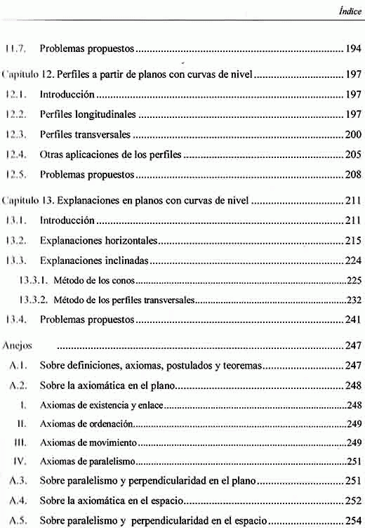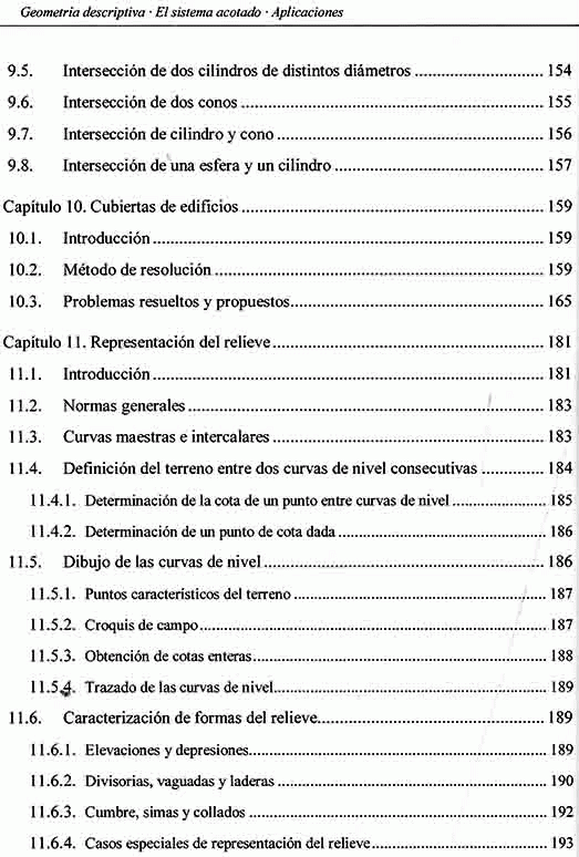 Con esta publicación se pretende que los futuros graduados en Ingeniería que han de tener un conocimiento profundo de la representación del terreno y sus aplicaciones conozcan la herramienta imprescindible para ese fin: el sistema acotado (o de planos acotados). Para ello, en los temas primero (Generalidades) y decimocuarto (Anejos) del libro,se estudian los principios de geometría que son la base para construir dicho sistema; del tema segundo al sexto se muestra la teoría, propiamente dicha, del sistema acotado utilizando el abatimiento del plano proyectante, en primer lugar, y el abatimiento de un plano cualquiera, al final, como herramienta fundamental de estudio; del tema sexto hasta el noveno se aplica el sistema acotado a la resolución de problemas de intersección de rectas y planos con poliedros, con cilindros, con conos y con esferas por su importancia pedagógica; y del tema décimo al decimotercero, se estudian las aplicaciones más importantes del sistema acotado en ingeniería como son la resolución de cubiertas de edificaciones, la elaboración de planos y mapas topográficos, la realización de perfiles longitudinales y transversales, el estudio gráfico de las explanaciones necesarias en una obra, etc. Para facilitar, en lo posible, el aprendizaje del sistema acotado el libro contiene un número importante de figuras (trescientas), de problemas resueltos (veinticinco) y de problema propuestos (cincuenta).