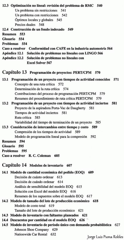 Resumen: El propósito de esta edición es proveer al lector el entendimiento de los conceptos del papel que desempernan los métodos cuantitativos en el proceso de toma de decisiones. La obra describe los muchos de estos métodos desarrollados a lo largo de los anos, explica como funcionan y muestra como quien toma las decisiones puede aplicarlos e interpretarlos. Su enfoque no es estrictamente matemático sino orientado hacia las aplicaciones.