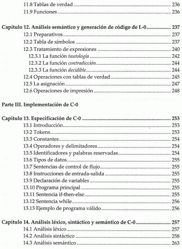 En la parte teórica se detallan a todas las fases para la creación de un procesador de lenguajes, y además, se incluyen ejercicios que ayudan a aclarar las ideas expuestas. La parte práctica desarrolla por completo un traductor para un lenguaje sencillo de lógica de proposiciones.