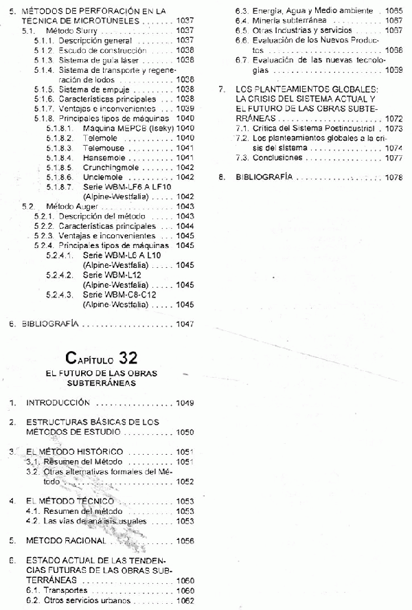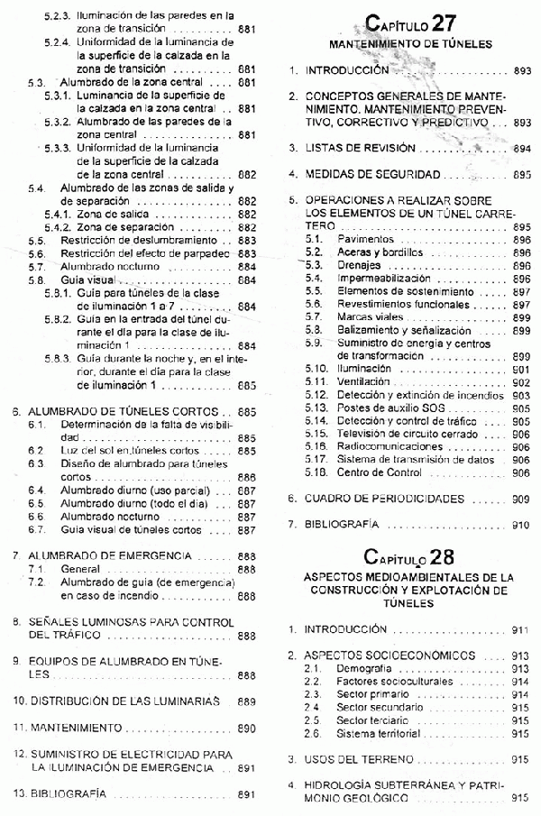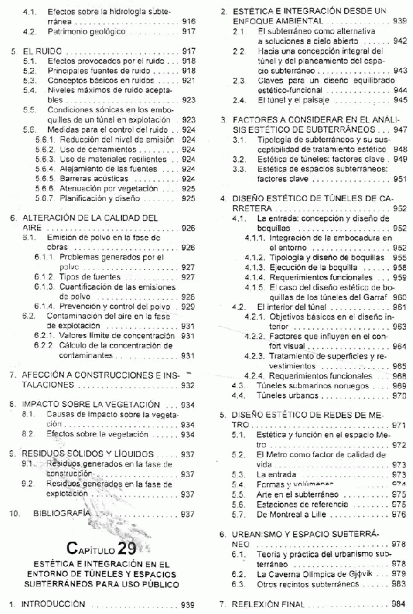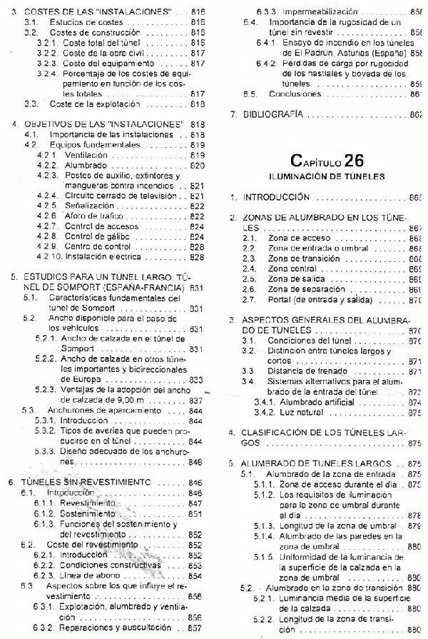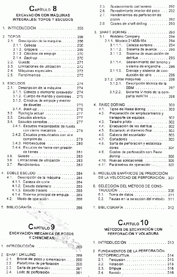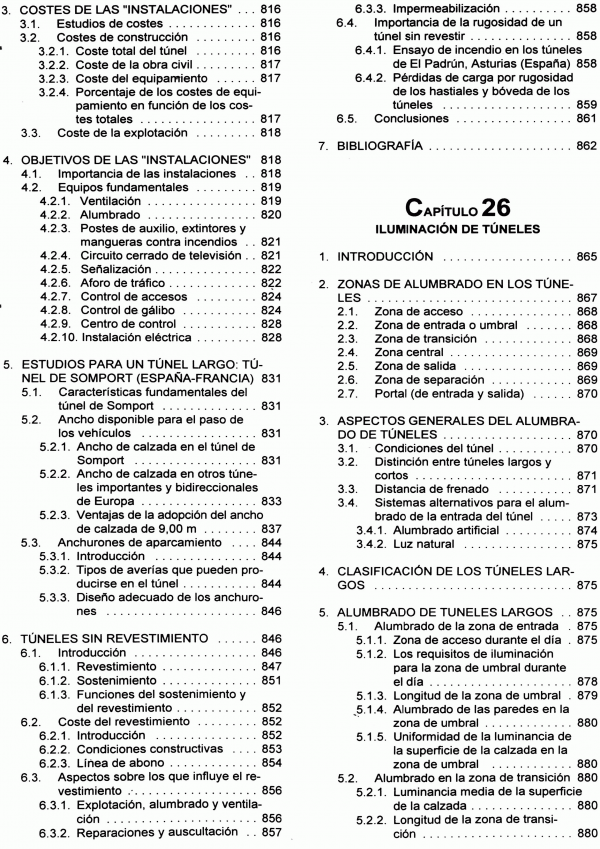 En este Manual se describen todos los aspectos relacionados con el diseño, construcción y explotación de túneles y otras obras subterráneas, desde las técnicas de reconocimiento y caracterización de los terrenos, los métodos de excavación y desescombro subterráneos, pasando por los criterios de diseño del sostenimiento y revestimiento de túneles, los tratamientos de mejoras de los macizos rocosos, los trabajos de electrificación y ventilación, las medidas de seguridad, etc., hasta las perspectivas de futuro de las diferentes obras subterráneas y la incorporación de criterios ambientales en este tipo de proyectos