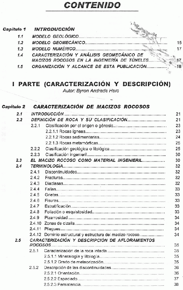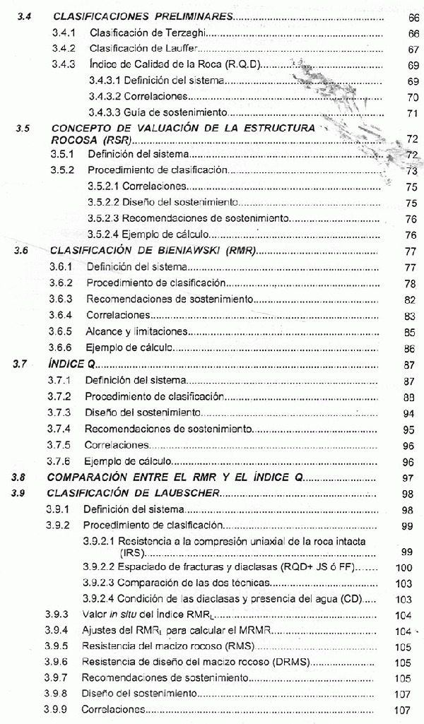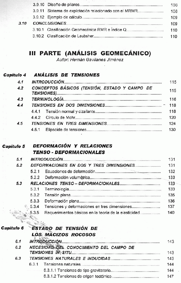 Caracterización de macizos rocosos -- Clasificaciones geomecánicas -- Análisis de tensiones -- Deformación y relaciones tenso deformacionales -- Estado de tensión de los macizos rocosos.