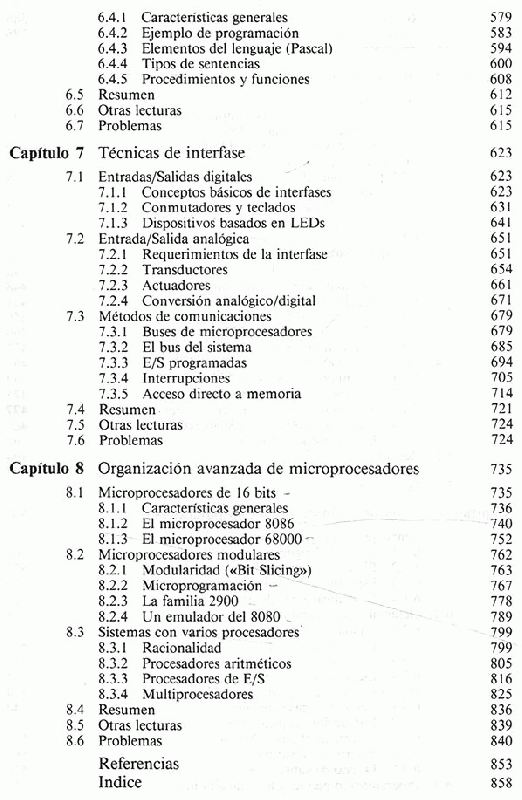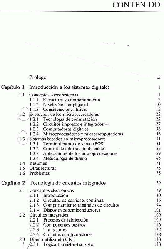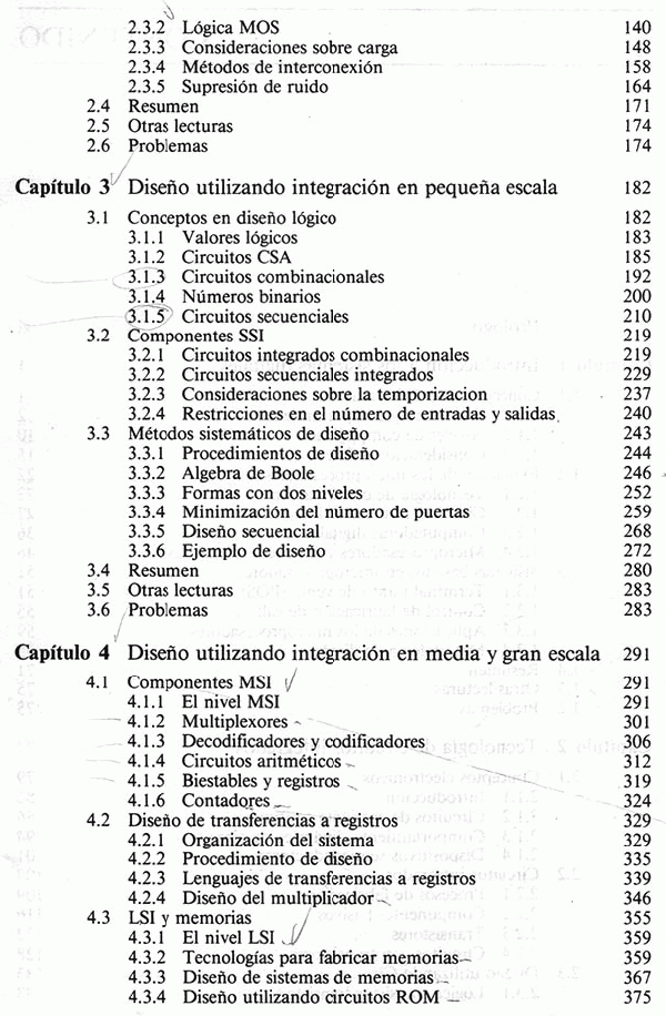 Introducción a los sistemas digitales -- Tecnología de circuitos integrados -- Diseño utilizando integración en pequeña escala -- Diseño utilizando integración en media y gran escala -- Organización básica de los microprocesadores -- Programación de microcomputadoras -- Técnicas de interfase --