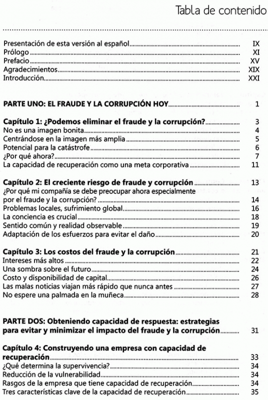 La lucha contra el fraude y la corrupción es tarea de todos. Porque afecta a todos los que participan en la cadena de valor del negocio: no solamente la empresa como tal, sino también sus proveedores, clientes, socios de negocio y público en general. Si bien la responsabilidad principal recae en la junta de directores y en el comité de auditoría, esto es, en quienes establecen el tono desde lo alto, es tarea de todos en la organización. Capacidad de recuperación empresarial. Administración del creciente riesgo de fraude y corrupción aborda de manera práctica cómo las empresas, y particular