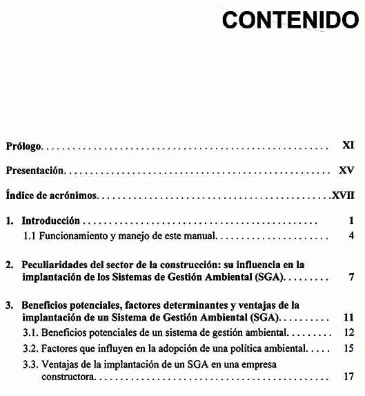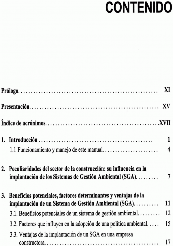 Este manual de referencia se ha redactado pensando en los equipos técnicos y mandos intermedios de empresas constructoras, sea cual sea el tamaño de dichas empresas. Se trata de un manual de referencia rápida con el que poder aplicar, sistematizar o corregir cuestiones planteadas en las etapas de implementación y puesta en funcionamiento de los sistemas de gestión ambiental (SGA) en empresas constructoras. Además pretende ser una herramienta de apoyo que proporcione una visión de conjuntos sobre estos sistema de gestión y las diferentes fases de proceso de implantación de los mismos.