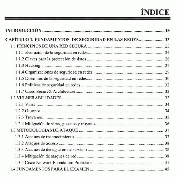 Como en toda la serie de libros Redes Cisco, esta guía fue creada para ser amigable con el lector, dejando de lado lo innecesario y centrándose fundamentalmente en el examen de certificación. Contiene ejemplos de configuraciones y capturas de dispositivos reales, notas aclaratorias y recomendaciones para el examen. También está destinada para quien quiera aprender sobre la seguridad en las redes y los procesos globales de seguridad.