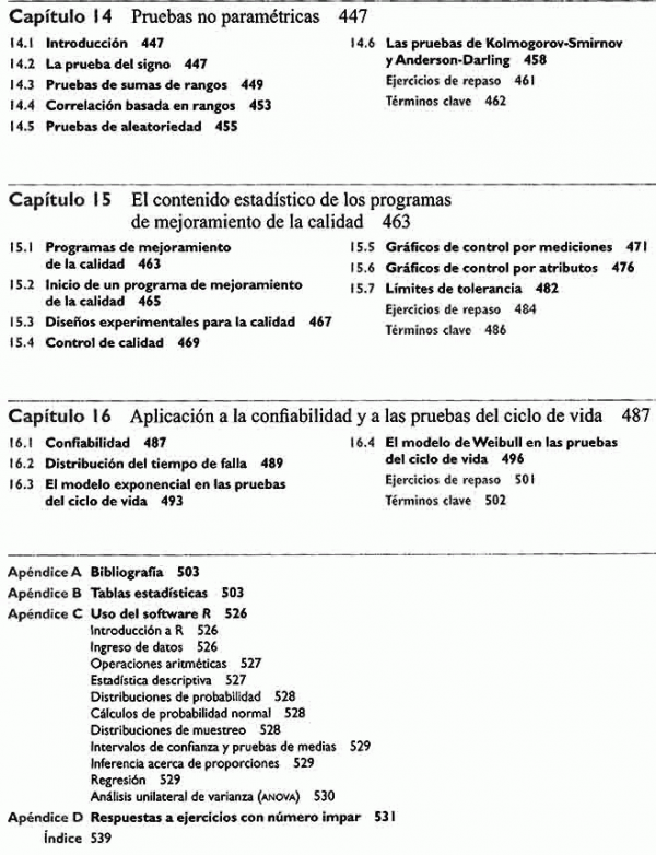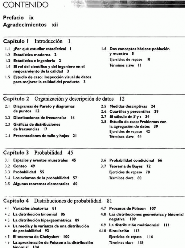 Los ejemplos tomados de diversas compañías ilustran los métodos indispensables y el razonamiento requerido para hacer generalizaciones a partir de los datos recabados en experimentos. Todo ello ayudará al lector a comprender los conceptos y problemas estadísticos fundamentales que encontrará en el campo profesional.