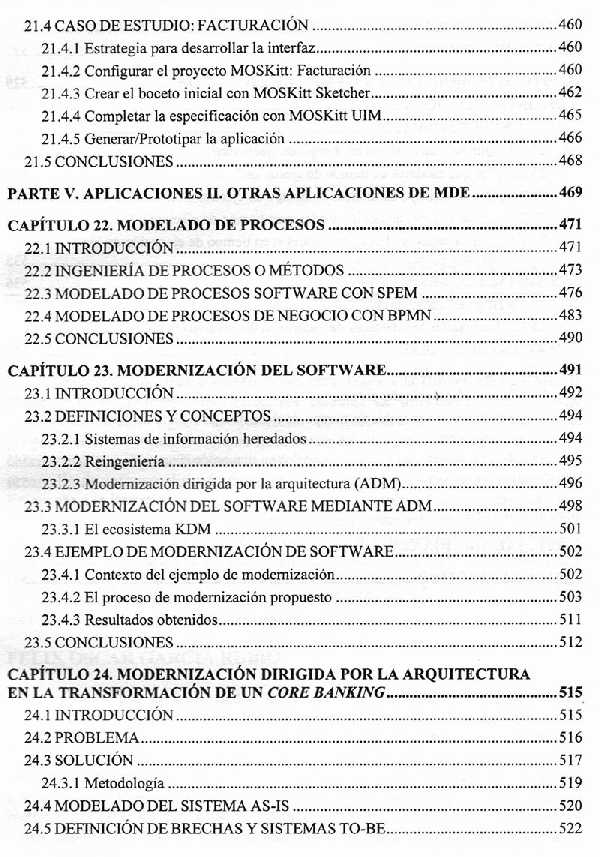 Este libro presenta un magnífico análisis conceptual de la ingeniería del software basada en modelos (Model-Driven Engineering, MDE) como un camino hacia la industrialización de la producción de software El uso sistemático de modelos se presenta ahora como la forma apropiada para conseguir programar con un nivel más alto de abstracción y de aumentar el nivel de automatización, porque los conceptos, métodos y técnicas de MDE facilitan la creación y evolución del software.