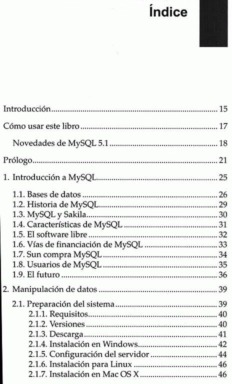 MySQL lidera el mercado de las bases de datos de código abierto. Las empresas que lo utilizan consiguen recortar el gasto dedicado a este tipo de software en un 90%. Por regla general no cuesta dinero utilizarlo, siempre y cuando se sigan unas reglas muy sencillas. Este gestor se caracteriza por su facilidad de uso, velocidad y flexibilidad para funcionar en diferentes sistemas operativos. Este libro le enseñará a trabajar con bases de datos, tablas, tipos de columna y SQL. Todos los conceptos van acompañados de ejemplos para facilitar su comprensión. A las novedades introducidas en la versión 5: procedimientos almacenados, desencadenadores o triggers, vistas, MySQL Administrator o MySQL Query Browser, se añaden las de la versión 5.1: tareas programadas, registro en tablas, actualización de tablas, XML y mysqlslap, un emulador de carga. Toda una artillería de herramientas para este importante servidor de bases de datos multiusuario.