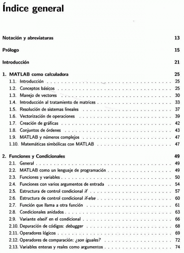 este libro esta concebido para que se pueda articular en torno a él un curso de introducción a la programación estructurada para titulaciones no informáticas utilizando el lenguaje de comandos de matlab como lenguaje de referencia. Incorpora explicaciones teóricas, ejemplos ejercicios propuestos y resueltos proyectos, etc. El objetivo que se busca es que al final del curso el estudiante haya asimilado los conceptos de la programación estructurada y que sienta cómodo dentro del entorno MATLAB.