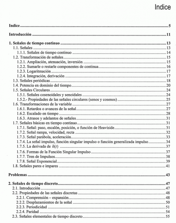 Este texto trata las señales, en tiempo continuo y en tiempo discreto, trabajadas mediante operaciones y transformaciones tanto de la señal como de la variable y se analizan las clásicas señales usadas a la entrada de filtros y redes para su ensayo, modelado y diseño.