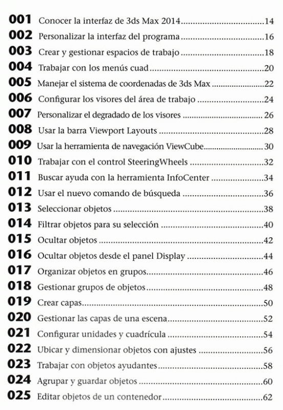 3ds Max 2014. En este primer volumen dedicado al programa de modelado tridimensional 3ds Max 2014 se estudian en profundidad los principales herramientas de creación y edición de la aplicación, unas de las as utilizadas y respetadas en toso el mundo por los profesionales de desarrollo de juegos, televisión, cine y composición digital, Con estos 100 ejercicios el usuario tendrá una primera toma de contacto con el programa y aprenderá a realizar operaciones básicas tales como crear objetos planos y tridimensionales y transformarlos y editarlos después con distintas herramientas y modificaciones.