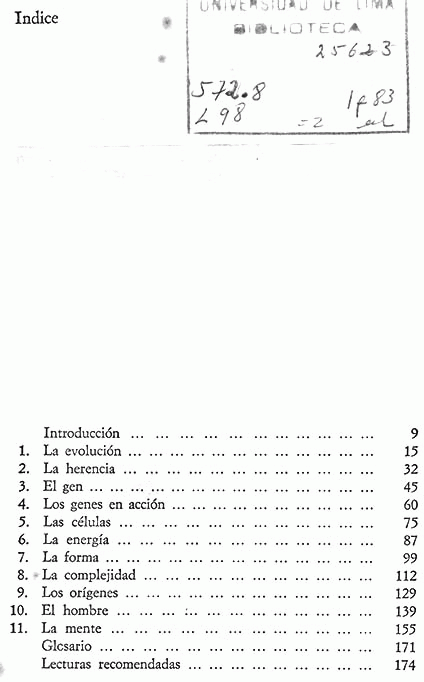 | 572 / T48 Hacia Una Ciencia del Hombre / [Impreso] | 572.737 / K653 Introducción a la Antropología Educacional / [Impreso] | 572.8 / G25 Tópicos Sobre Biología Molecular / [Impreso] | 572.8 / L98 La Vida, Experimento Inacabado / [Impreso] | 572.8 / P19 Macromoleculas / [Impreso] | 572.8 / P26 Biomoléculas: [Impreso] Base de la vida / | 573.1 R85 Genética De Las Población Humanas/ [Impreso] |