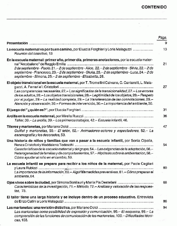 En este volumen se recogen numerosas experiencias educativas realizadas en escuelas infantiles municipales de Reggio Emilia (Italia). Proyectos y actividades nacidos del interés de un conjunto de profesores que conviven con niños y niñas en las aulas,