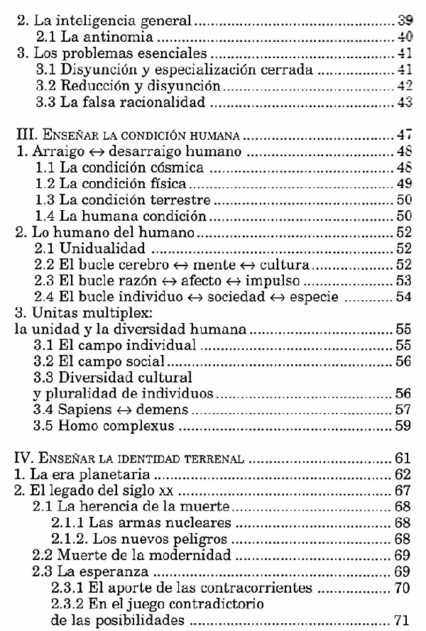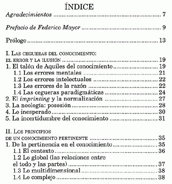 Morin propone aquí siete saberes fundamentales que la educación de futuro debe tratar tanto en cualquier saciedad como en cualquier cultura, sin exclusividad ni rechazo, según formas y reglas propias de cada sociedad y de cada cultura.