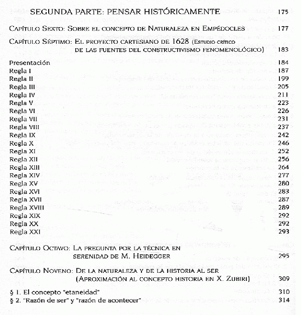 La obra contempla tres partes: pensar temáticamente, pensar históricamente y pensar sobre nosotros mismos.