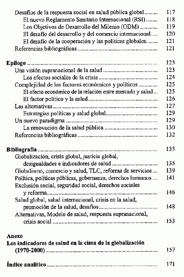 La obra expone un punto de vista novedoso sobre los efectos globalizantes que tienen las decisiones estatales en la salud mundial y estudia las diferentes facetas de la salud.