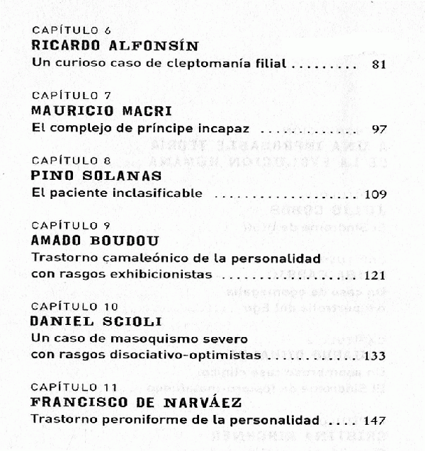 Qué tienen los políticos en la cabeza es un Manual de psicopatología, claro que sí, pero en clave de humor. En cada capítulo, los y las grandes protagonistas de la actualidad son estudiados a fondo por Diego Sehinkman, al amparo de teorías bien conocidas y con el invalorable archivo que proveen los diarios, los programas de televisión, las radios, las pinceladas biográficas y las respuestas pícaras al movilero.