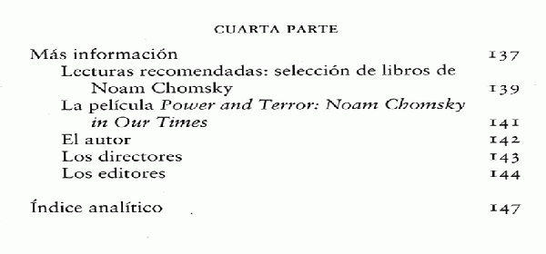 Lecturas recomendadas selección de libros de Noam Chomsky de la página / Índice analítico