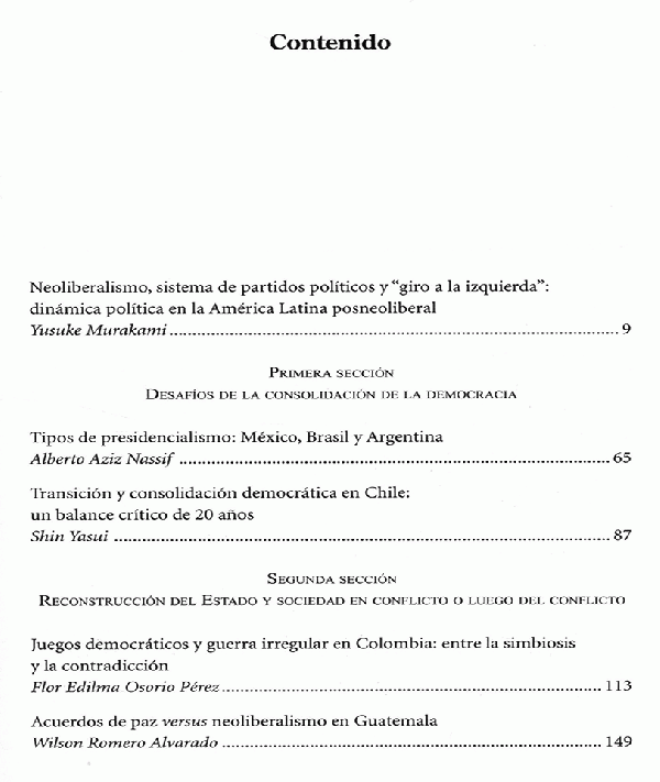 El análisis se desarrolla alrededor de tres temas principales: la consolidación de la democracia, la reconstrucción del Estado y sociedad en conflicto o luego del conflicto, además la desigualdad tanto social como política.