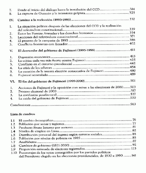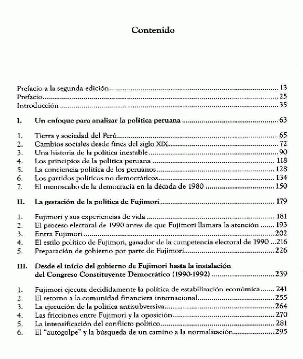Este libro analiza la era fujimorista desde el ángulo histórico y desde la perspectiva de las instituciones políticas con el objetivo de ubicar al gobierno de Fujimori en el contexto general de la historia peruana.