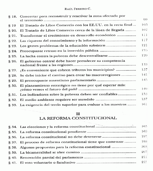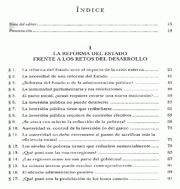 La Reforma del Estado es un tema central de esta tercera edición. El papel de la inversión pública, la reducción de la pobreza, los riesgos de una austeridad llevada a extremos absurdos, la necesidad de crear las macrorregiones, los nuevos mecanismo para una mejor gestión de la administración pública o el impacto de la reciente crisis externa en la economía del país, son abordados aquí.
