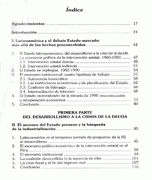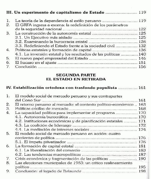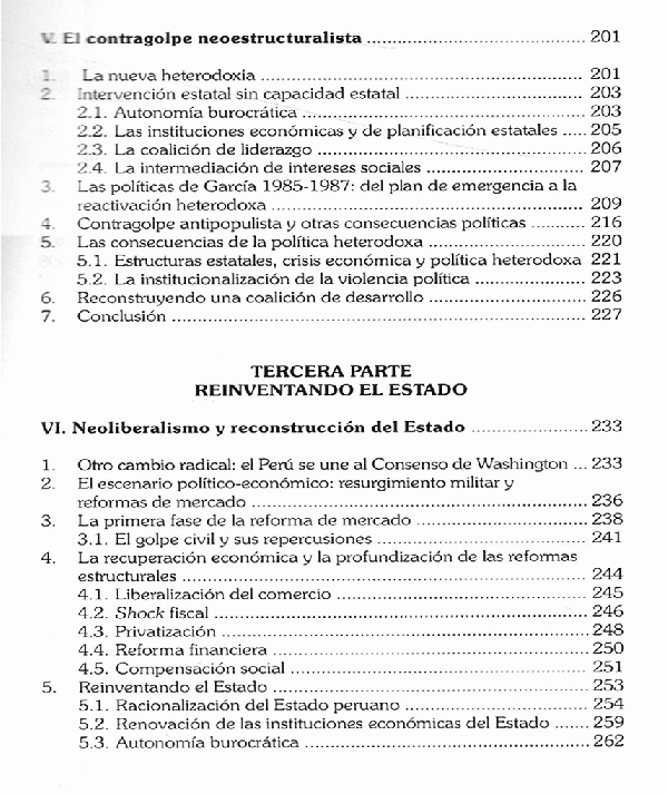 A través de un examen completo de la experiencia peruana, el libro explica el impresionante giro del país desde el punto de vista de la modernización institucional y la reforma interna del estado.