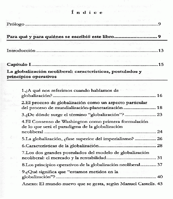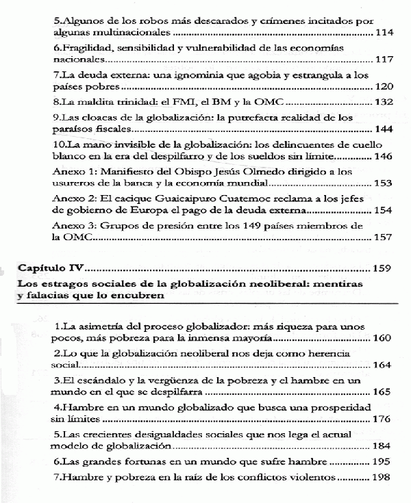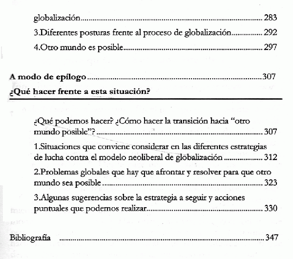 El autor sistematiza los diálogos, conferencias, jornadas, etc., en las que se abordan temas relacionados con la globalización en que estamos metidos y las formas en que podemos luchar contra el monstruo de la globalización neo-liberal.