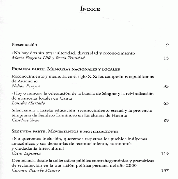 En Busca de Reconocimiento: Reflexiones Desde el Perú Diverso / María Eugenia Ulfe; Rocío Trinidad [Impreso]