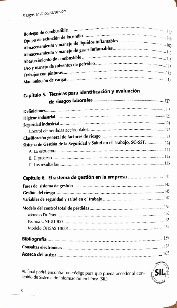 Esta obra presenta, en primer lugar, los aspectos legales de la seguridad y salud en el trabajo, según la nueva denominación introducida por la Ley 1562 de 2012, aplicables a la industria de la construcción en Colombia; posteriormente se citan algunos datos estadísticos de accidentalidad; luego , se abarcan los riesgos asociados a los diferentes procesos constructivos típicos de obra, la técnica para su identificación, evaluación y priorización.