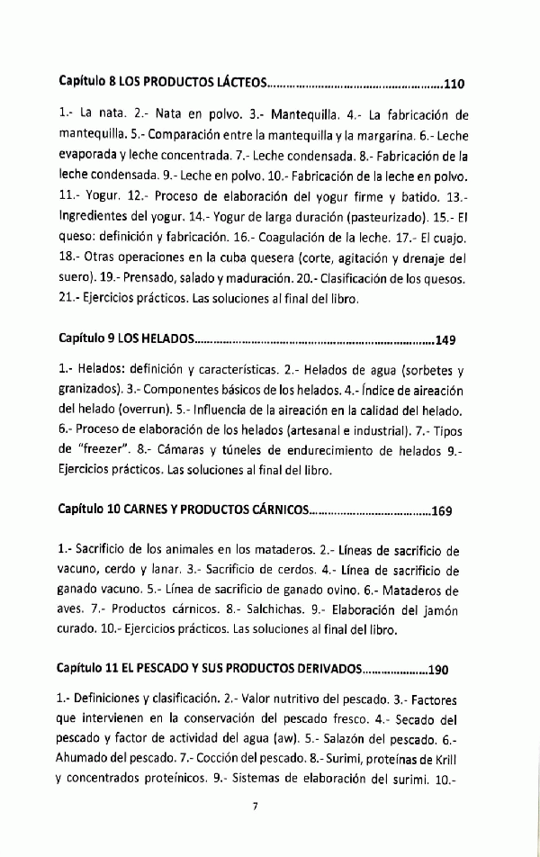 Los alimentos -- Alimentos antioxidantes, funcionales y transgénicos -- El etiquetado nutricional -- Los aditivos -- Seguridad alimentaria, trazabilidad -- El sistema de análisis de peligros y puntos críticos de control -- La leche -- Los productos lácteos -- Los Helados -- Carnes y productos cárnicos -- El pescado y sus productos derivados -- Huevos y ovoproductos -- Mermeladas, jaleas y miel -- zumos, néctares y salsa ketchup -- Productos de bollería, pastelería, galletas, caramelos, chicles, etc -- Aceites y grasas -- El café -- Frutos secos -- Condimentos y especies -- equipamiento en las industrias alimentraias.
