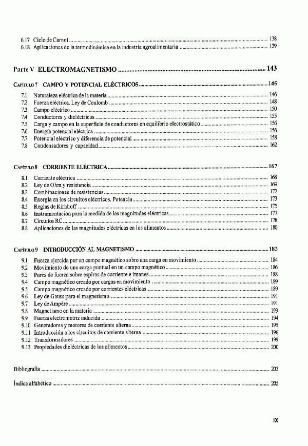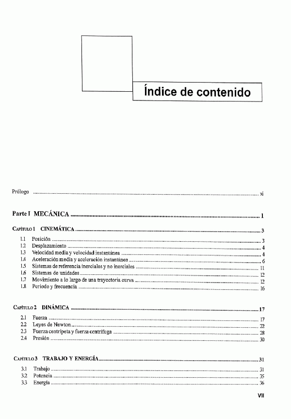 Mecánica -- Cinemática -- Dinámica -- Trabajo y energía --Elasticidad -- Mecánica de Fluidos -- Termodinámica -- Electromagnetismo -- Campo y potencial eléctricos -- Corriente eléctrica -- Introducción al Magnetismo.
