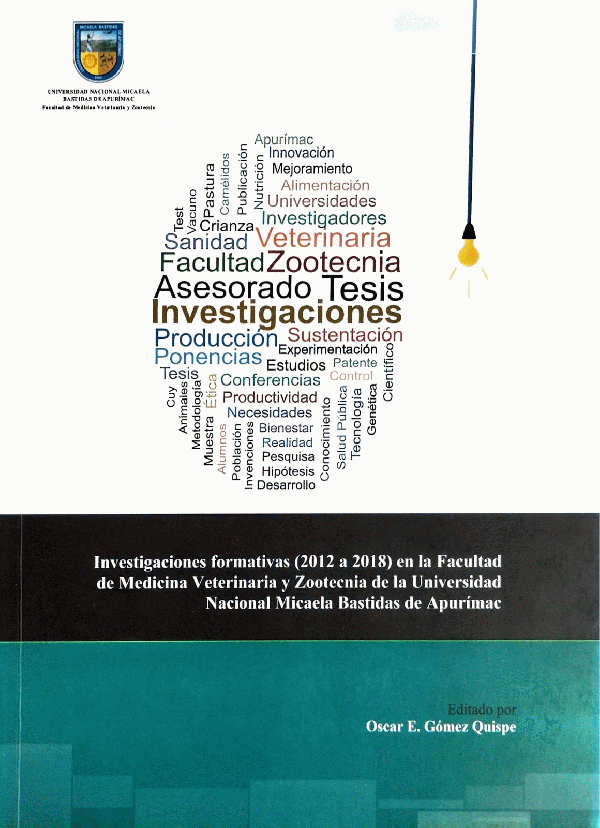 Investigaciones formativas : ( 2012 a 2018) en la Facultad de Medicina Veterinaria y Zootecnia de la Universidad Nacional Micaela Bastidas de Apurímac / Oscar E, Gómez Quispe [Impreso] por